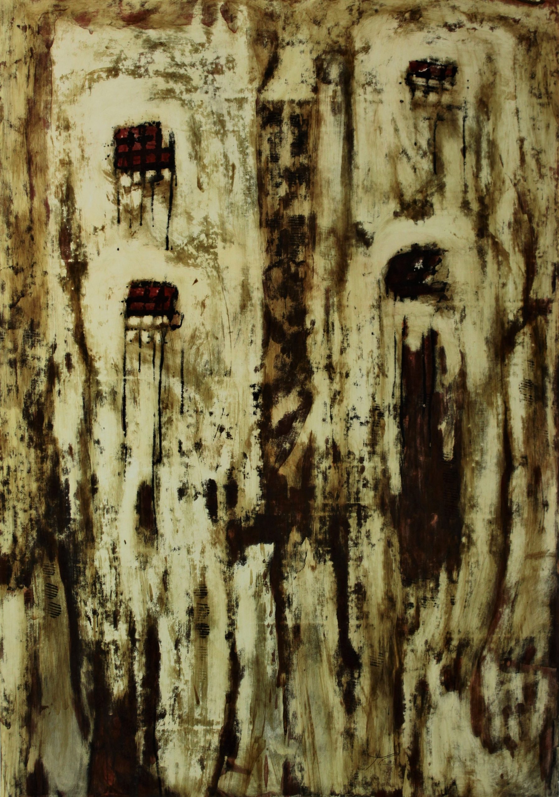 papier 250 grammes marouflé sur toile + chassis technique mixte 116*57 cms